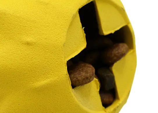 This rubber pet toy, featuring a fun yellow corn and pineapple design, is perfect for keeping your dog engaged. The hollow bottom allows you to fill it with dog food or treats, making mealtime playful while promoting mental stimulation and slowing down eating. A must-have for active dogs!