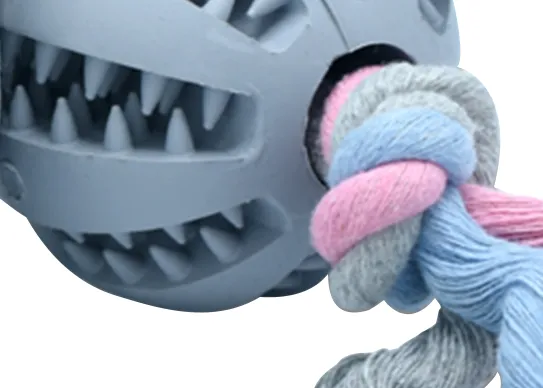 4.The integrated cotton rope adds extra versatility, perfect for tug-of-war games and interactive play with your pet.