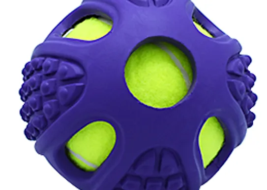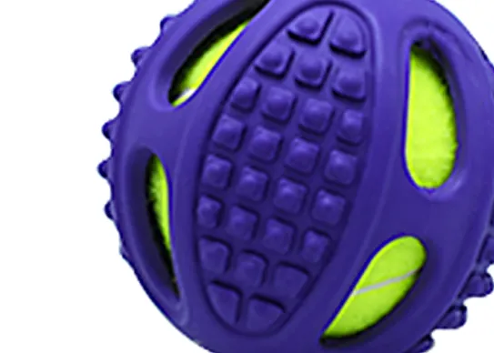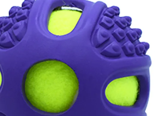 1. Durable Design: The strong rubber outer shell protects the tennis ball inside, ensuring long-lasting playtime for your dog.