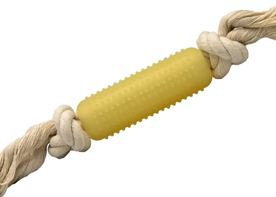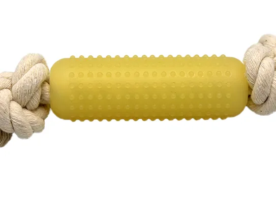 Keep your furry friend happy and active with our rope-and-rubber chew toy. Featuring a textured rubber stick with raised bumps and durable knotted cotton rope, it encourages healthy chewing, play, and bonding time. Perfect for reducing boredom while supporting your dog’s dental health. Fun, safe, and built to last.